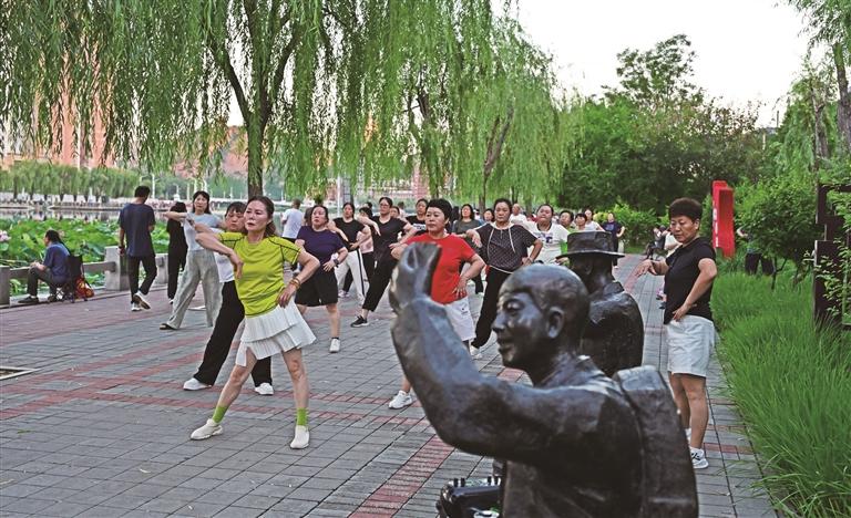 近年来,我市持续推进武烈河沿岸生态治理和景观提升工程,不仅设置了亲水平台、休闲步道、口袋公园等,还增设了夜间照明、便民座椅和廊亭等休憩设施,让河畔成为集生态观光、休闲健身、亲子互动于一体的综合性公共空间。每到傍晚,这里是市民“家门口的避暑天堂”,更是市民休闲健身的乐园。