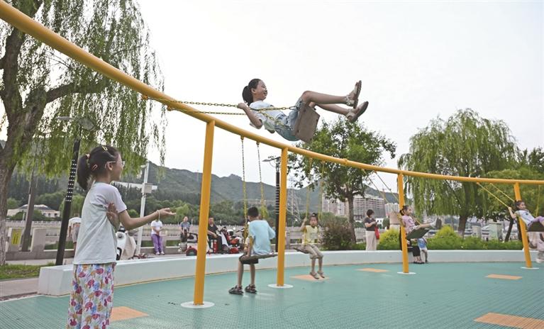 图③④ 口袋公园里的游乐设施成为孩子们的乐园。